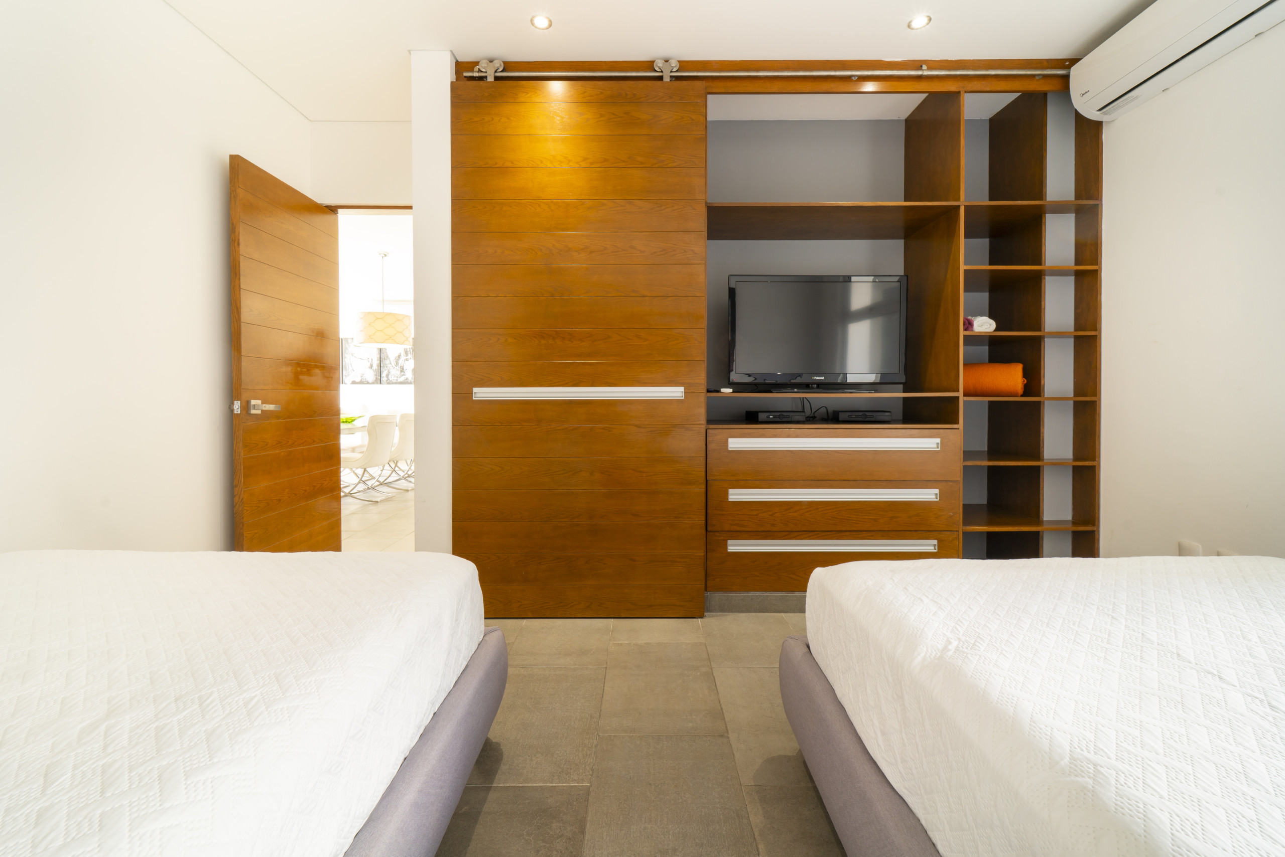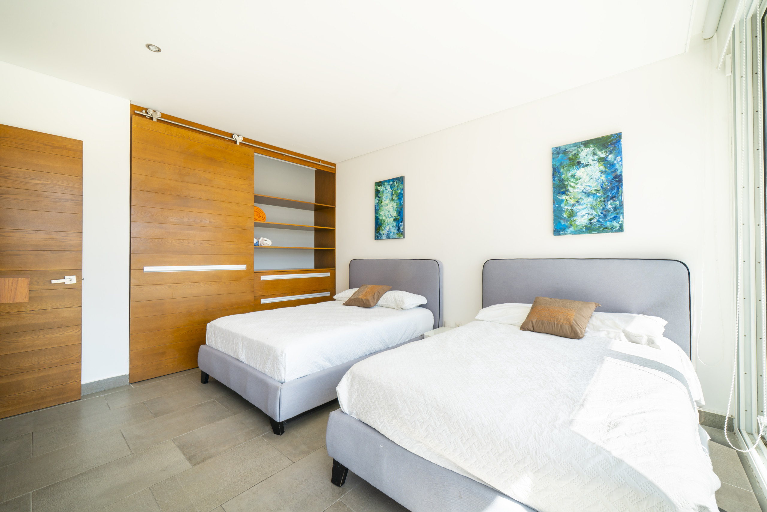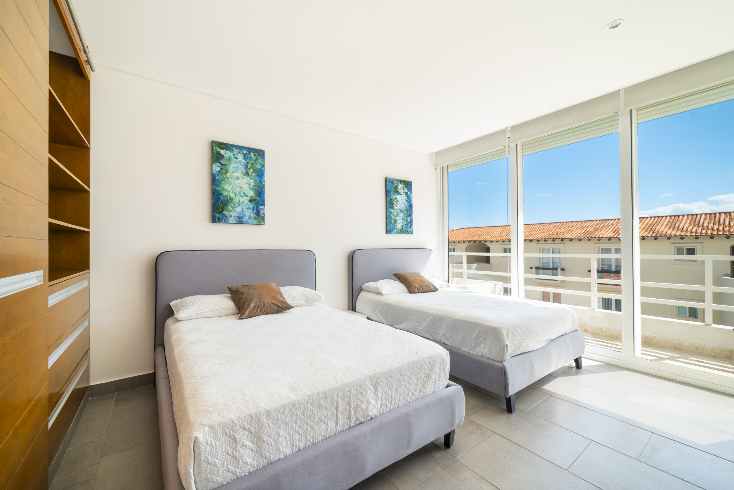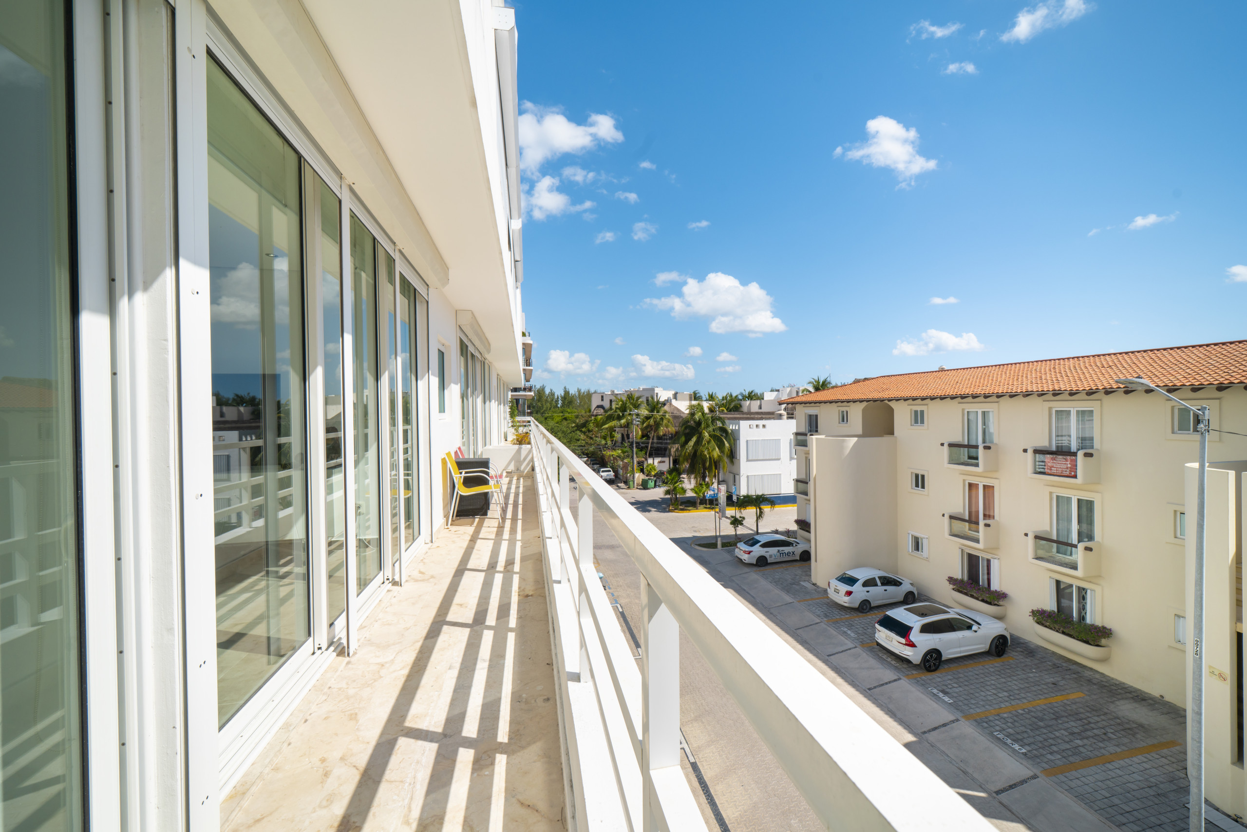 El departamento en Playa del Carmen posee 3 habitaciones y capacidad para 8 personas. Alojamiento de 112 m². Dispone de elevador, terraza, caja fuerte, acceso internet (wifi), balcón, aire acondicionado, alberca comunitaria, estacionamiento en mismo edificio, Televisión.La cocina americana, de inducción, está equipada con refrigerador, microondas, utensilios/cocina, cafetera y tostador.