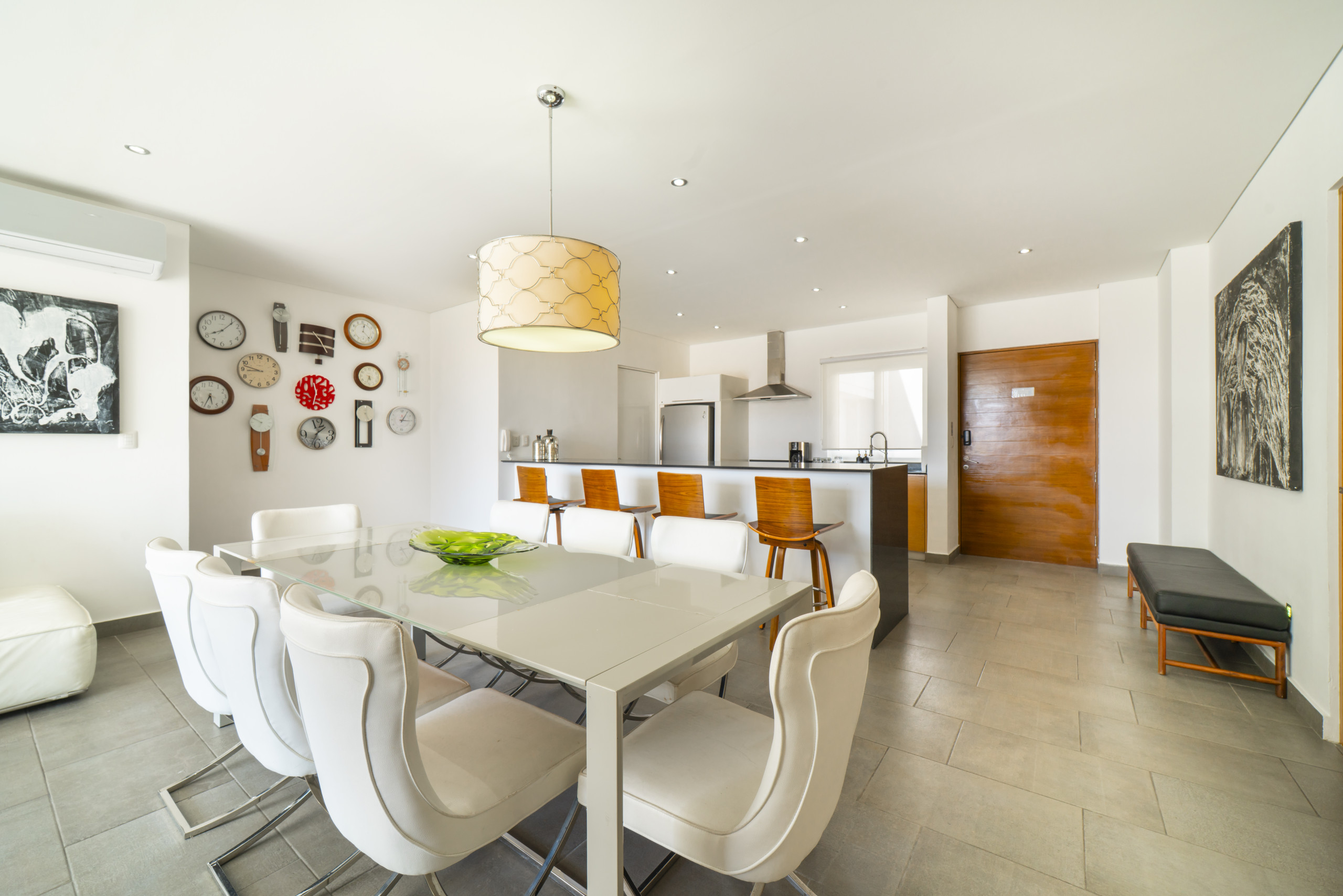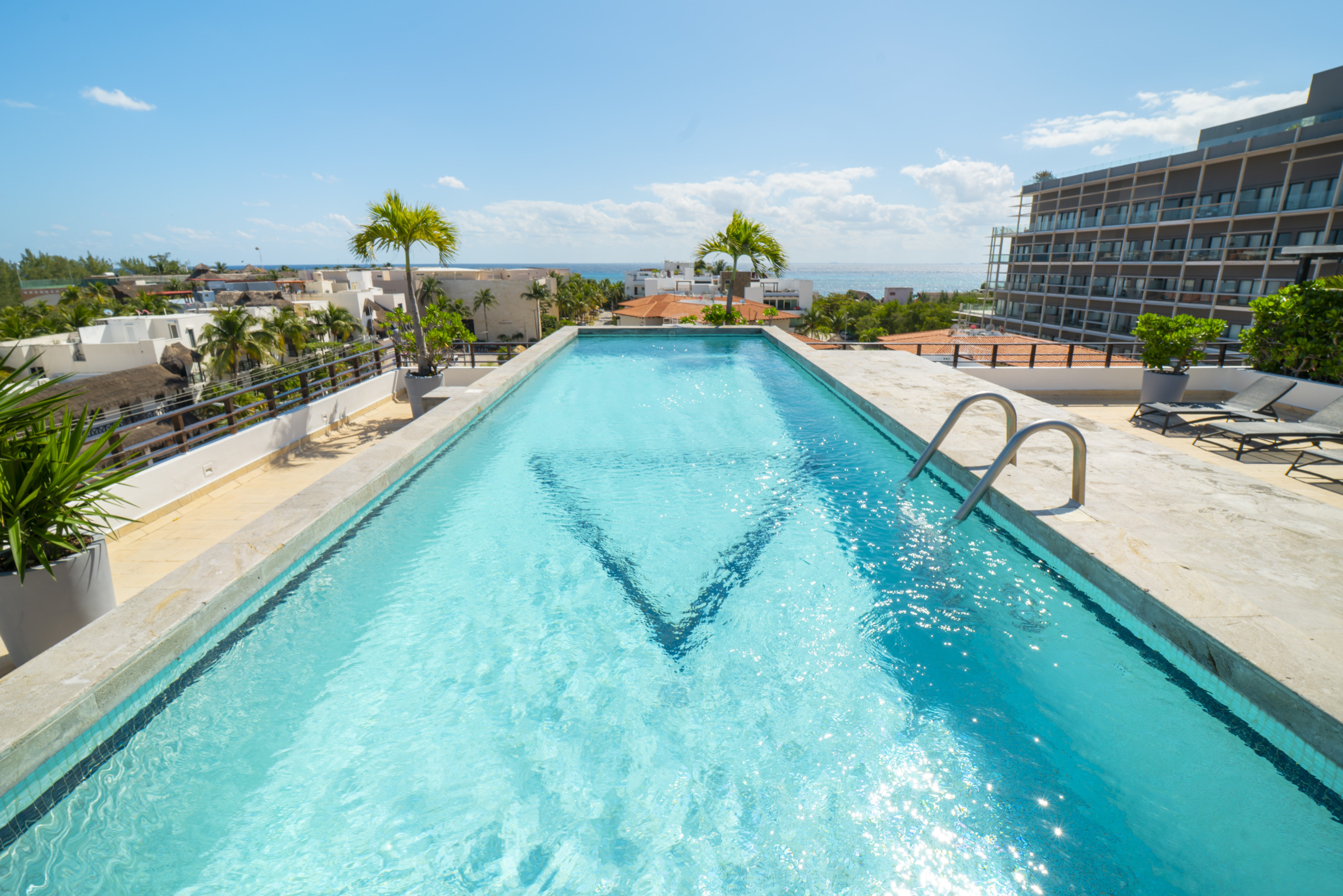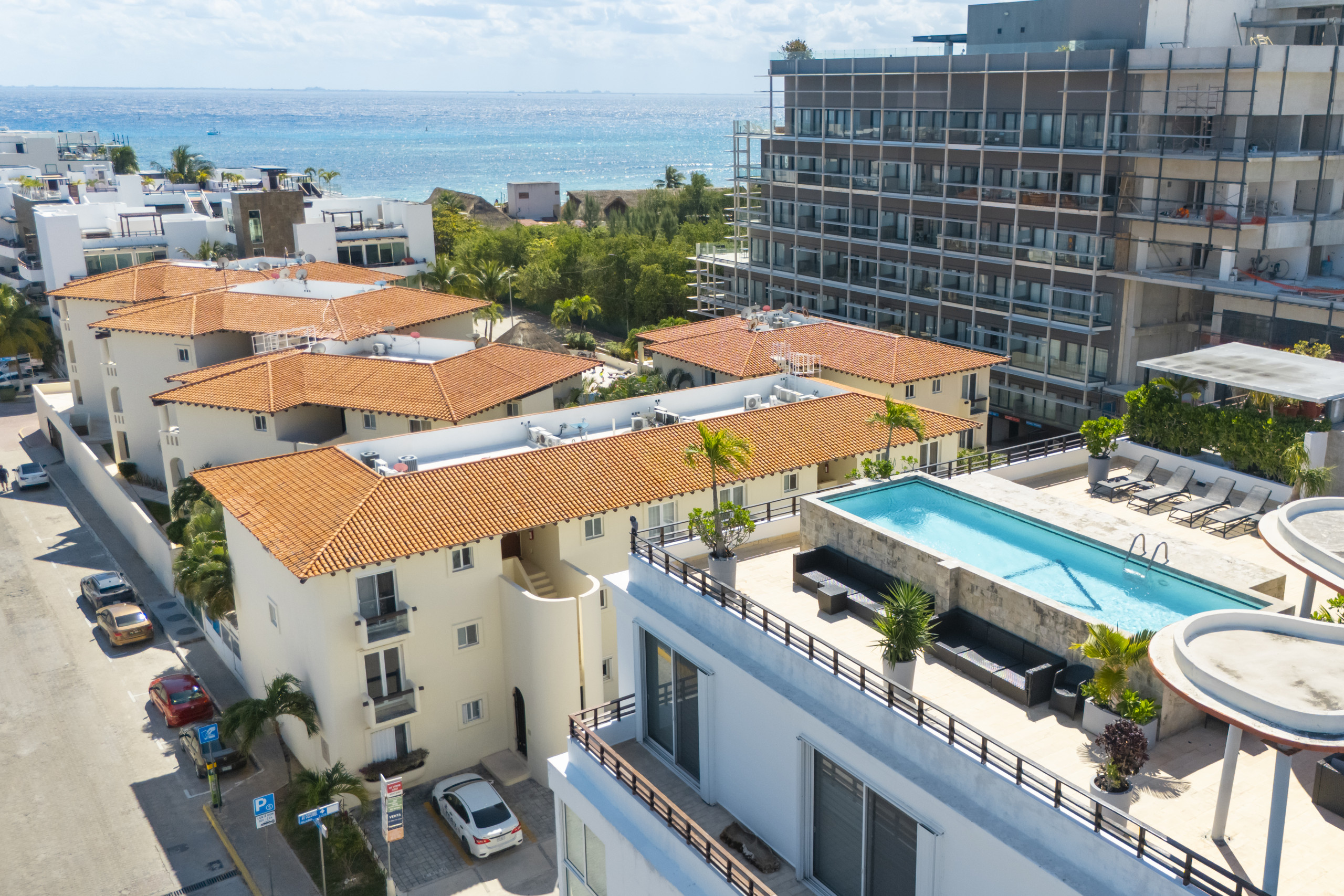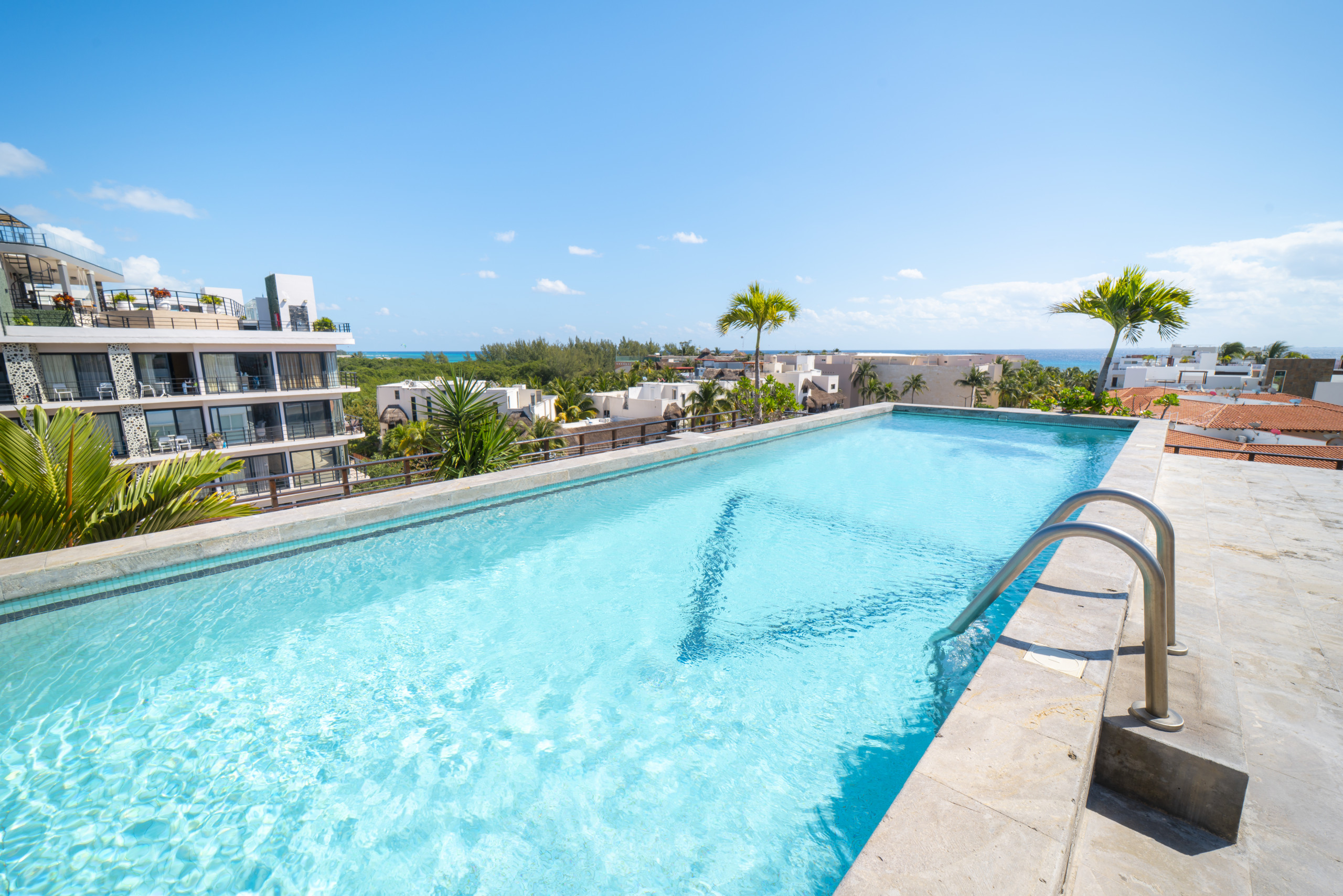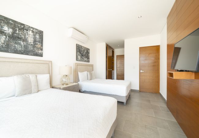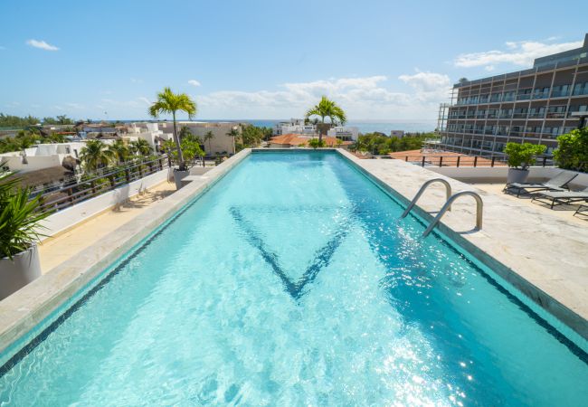 El departamento en Playa del Carmen posee 3 habitaciones y capacidad para 8 personas. Alojamiento de 112 m². Dispone de elevador, terraza, caja fuerte, acceso internet (wifi), balcón, aire acondicionado, alberca comunitaria, estacionamiento en mismo edificio, Televisión. La cocina americana, de inducción, está equipada con refrigerador, microondas, utensilios/cocina, cafetera y tostador.