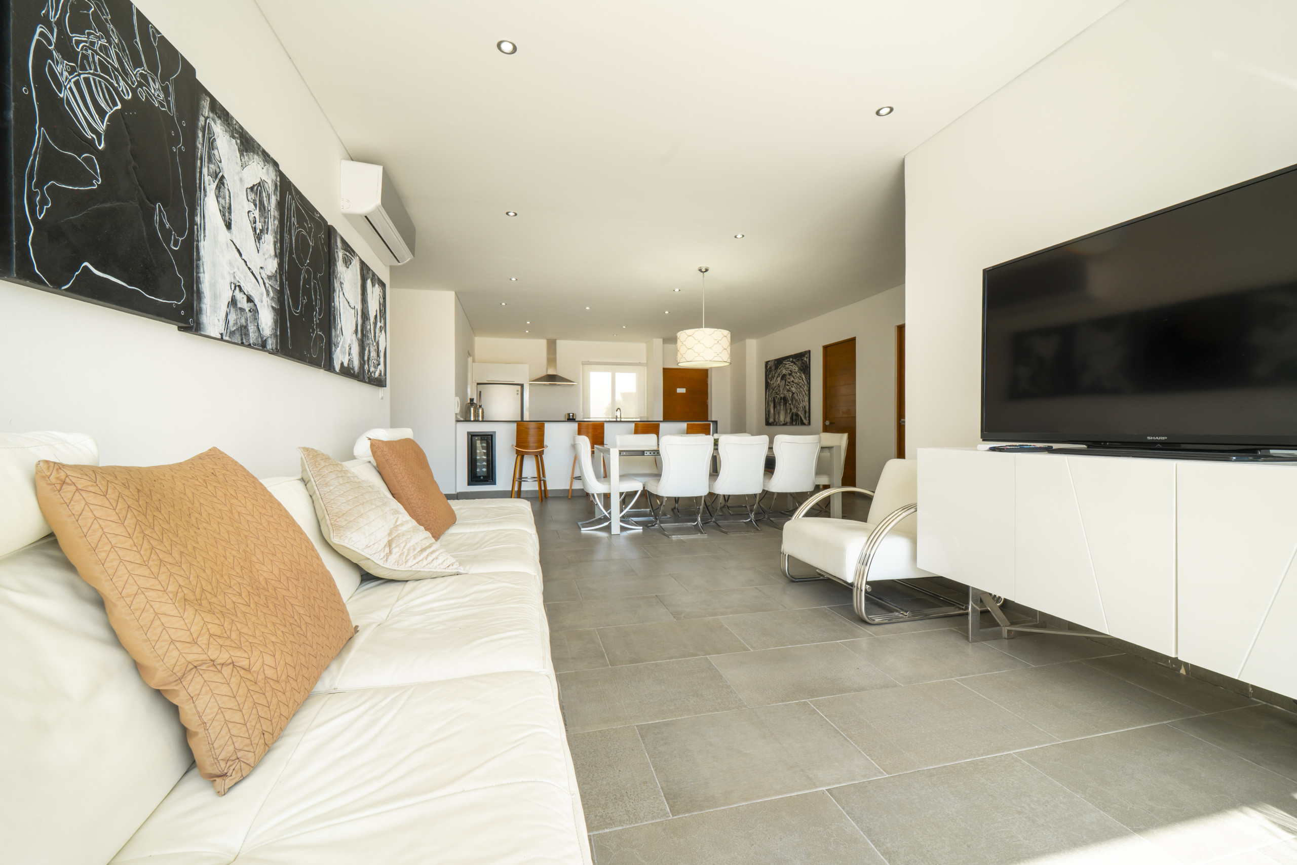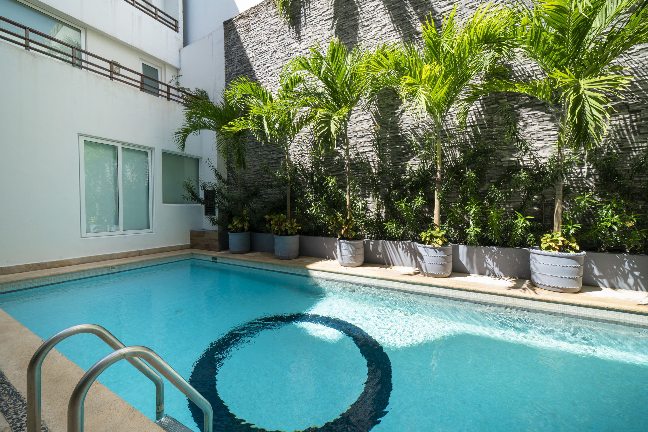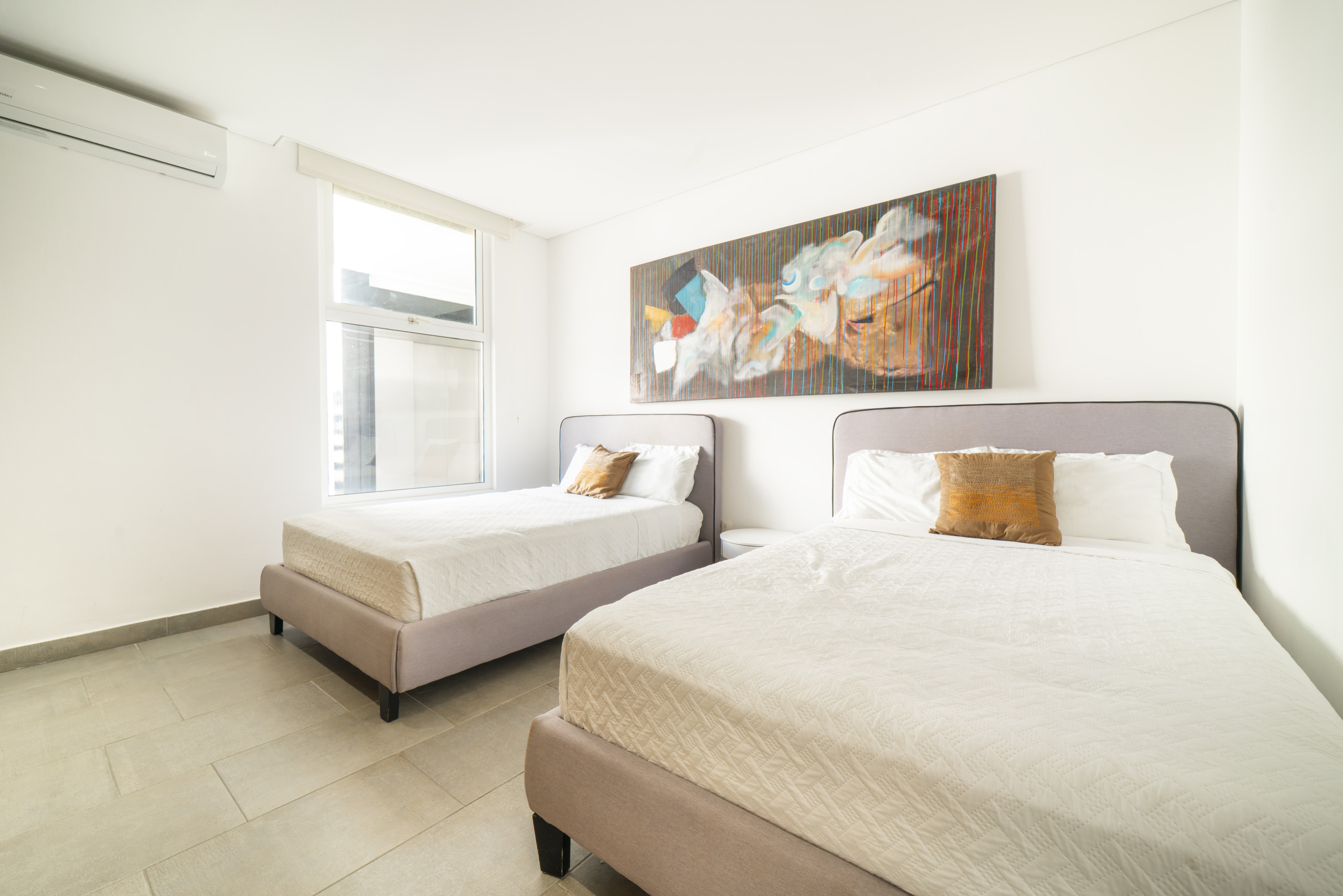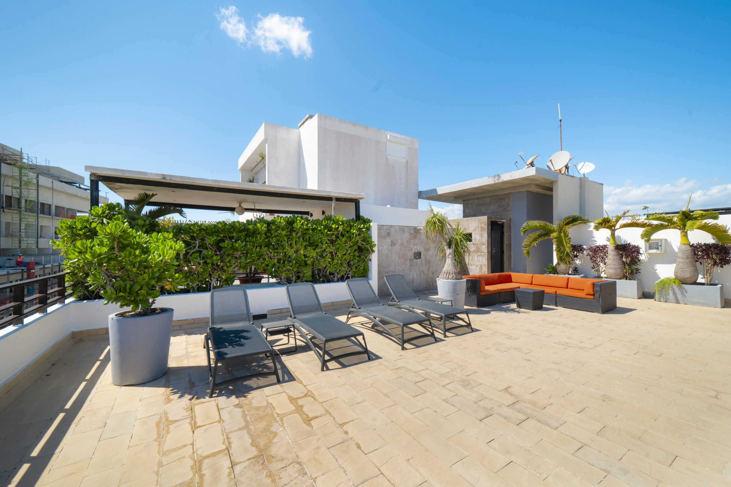 El departamento en Playa del Carmen posee 3 habitaciones y capacidad para 8 personas. Alojamiento de 112 m². Dispone de elevador, terraza, caja fuerte, acceso internet (wifi), balcón, aire acondicionado, alberca comunitaria, estacionamiento en mismo edificio, Televisión. La cocina americana, de inducción, está equipada con refrigerador, microondas, utensilios/cocina, cafetera y tostador.