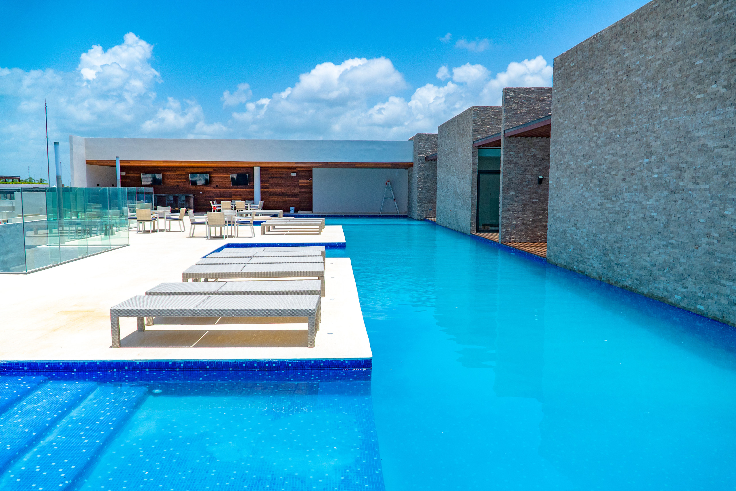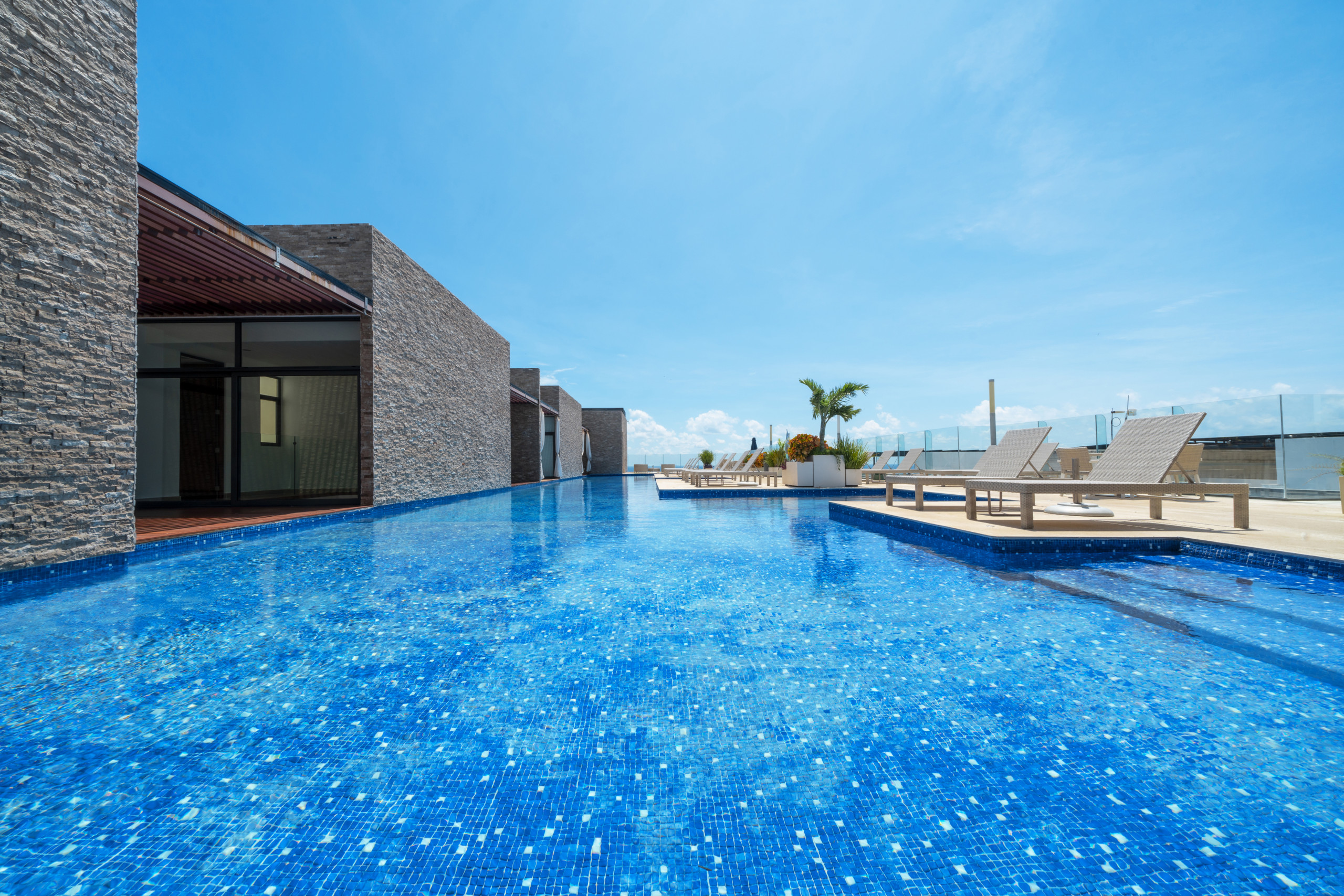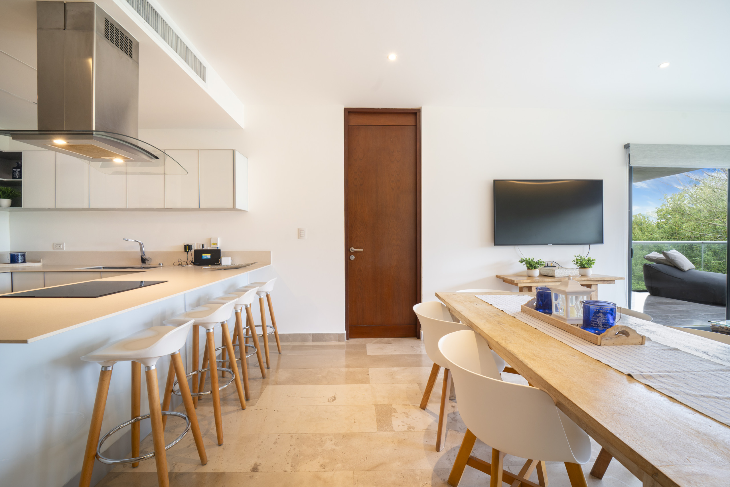 El departamento en Playa del Carmen posee 2 habitaciones y capacidad para 5 personas. Alojamiento de 108 m². Dispone de elevador, terraza, lavadora, caja fuerte, acceso internet (wifi), balcón, gimnasio, alberca comunitaria, garage en mismo edificio, 1 Televisión.La cocina americana, de inducción, está equipada con refrigerador, microondas, utensilios/cocina, cafetera y tostador.