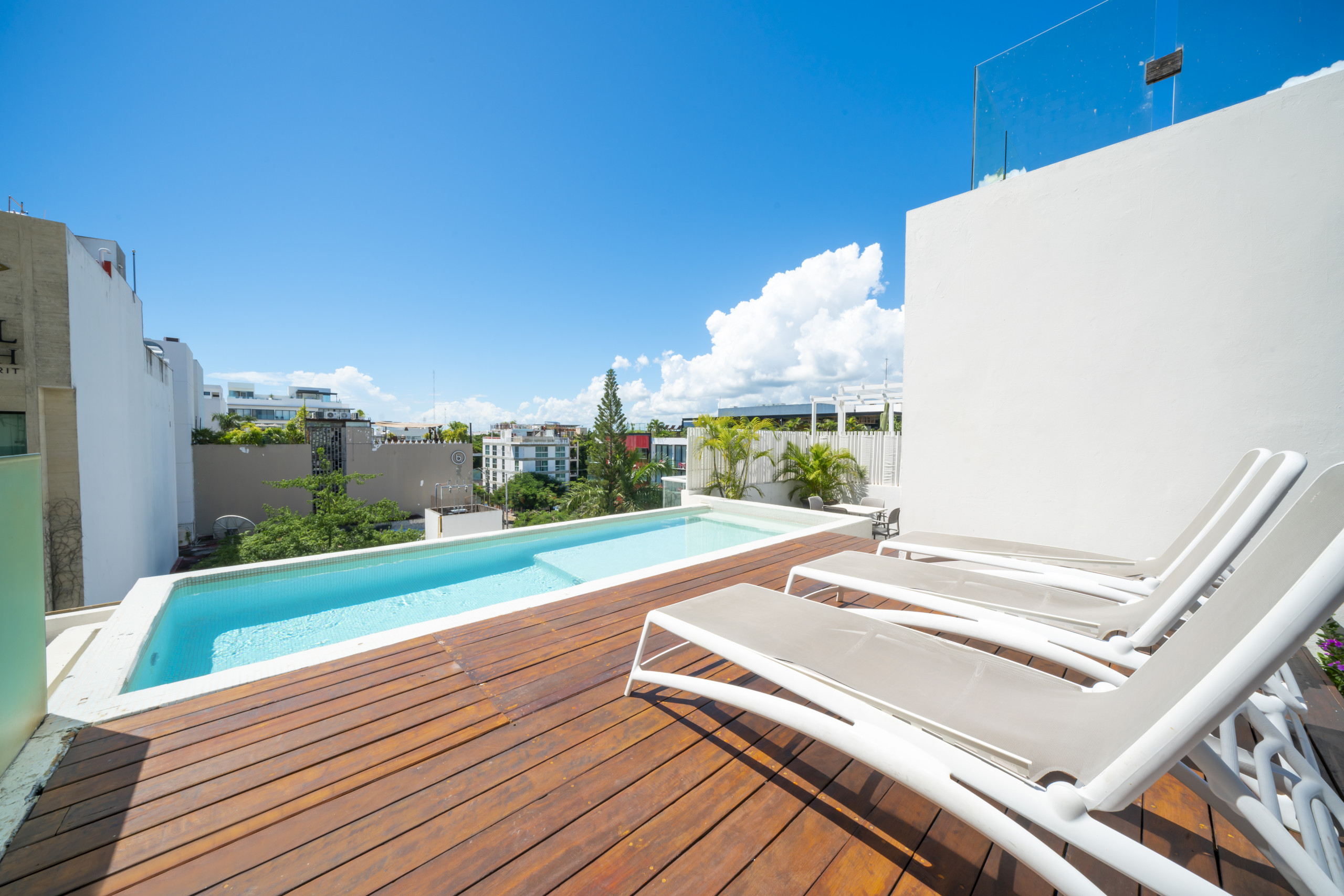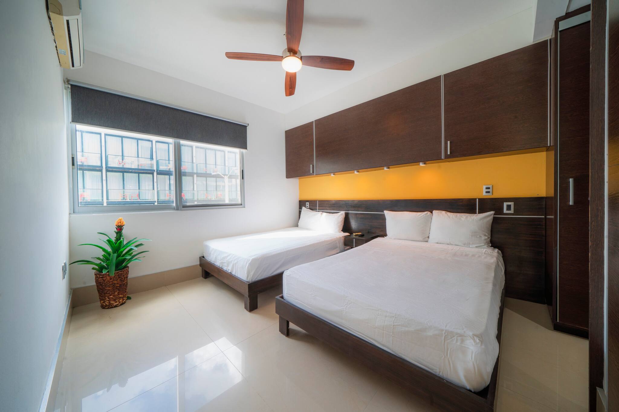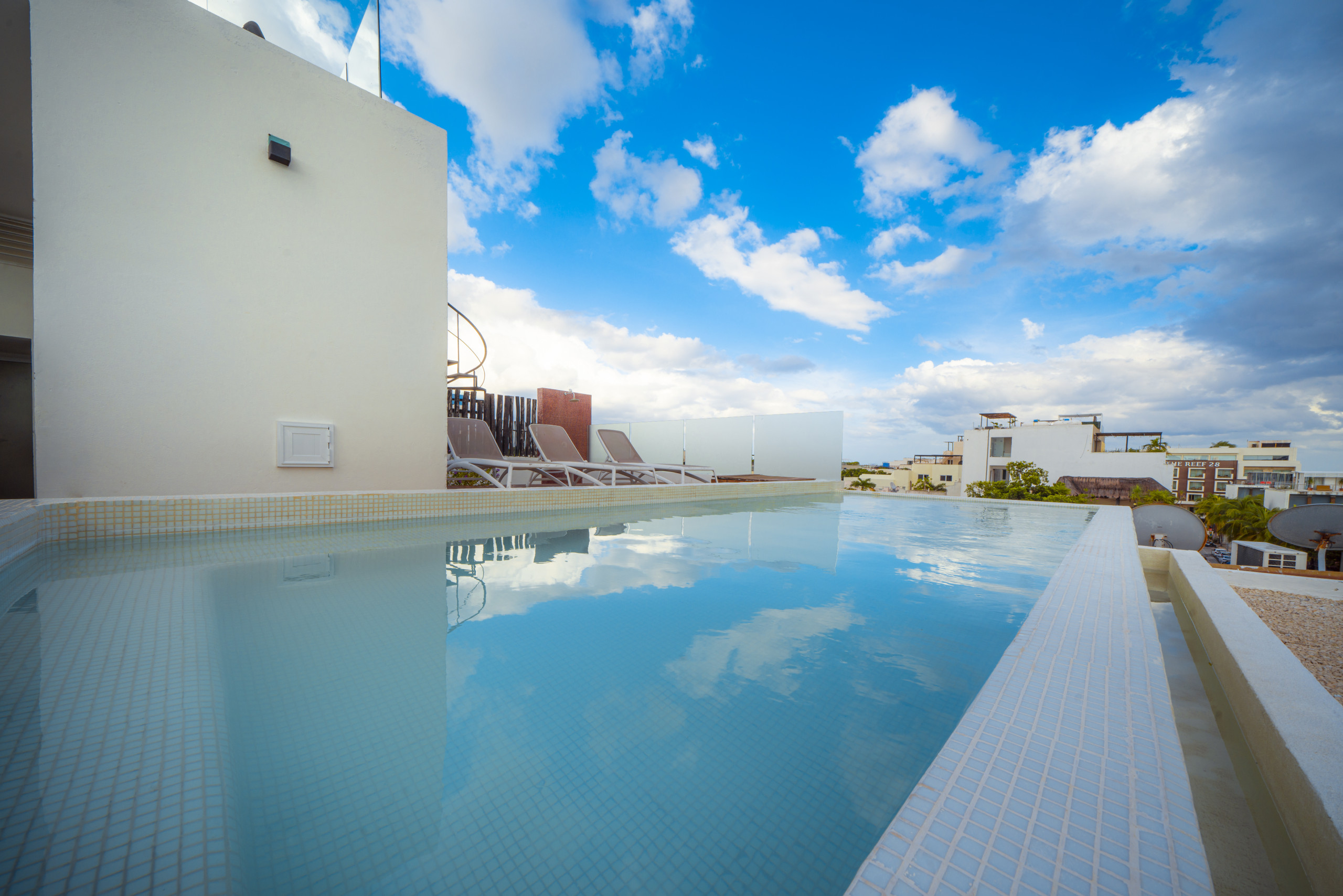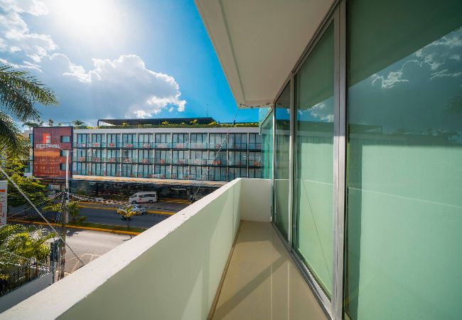 El residencial en Playa del Carmen posee 2 habitaciones y capacidad para 4 personas. Alojamiento de 98 m². Dispone de elevador, plancha, caja fuerte, acceso internet (wifi), secadora, balcón, aire acondicionado, alberca comunitaria, 1 Televisión.La cocina americana, de inducción, está equipada con refrigerador, microondas, lavavajillas, utensilios/cocina, cafetera, tostador y fogones.