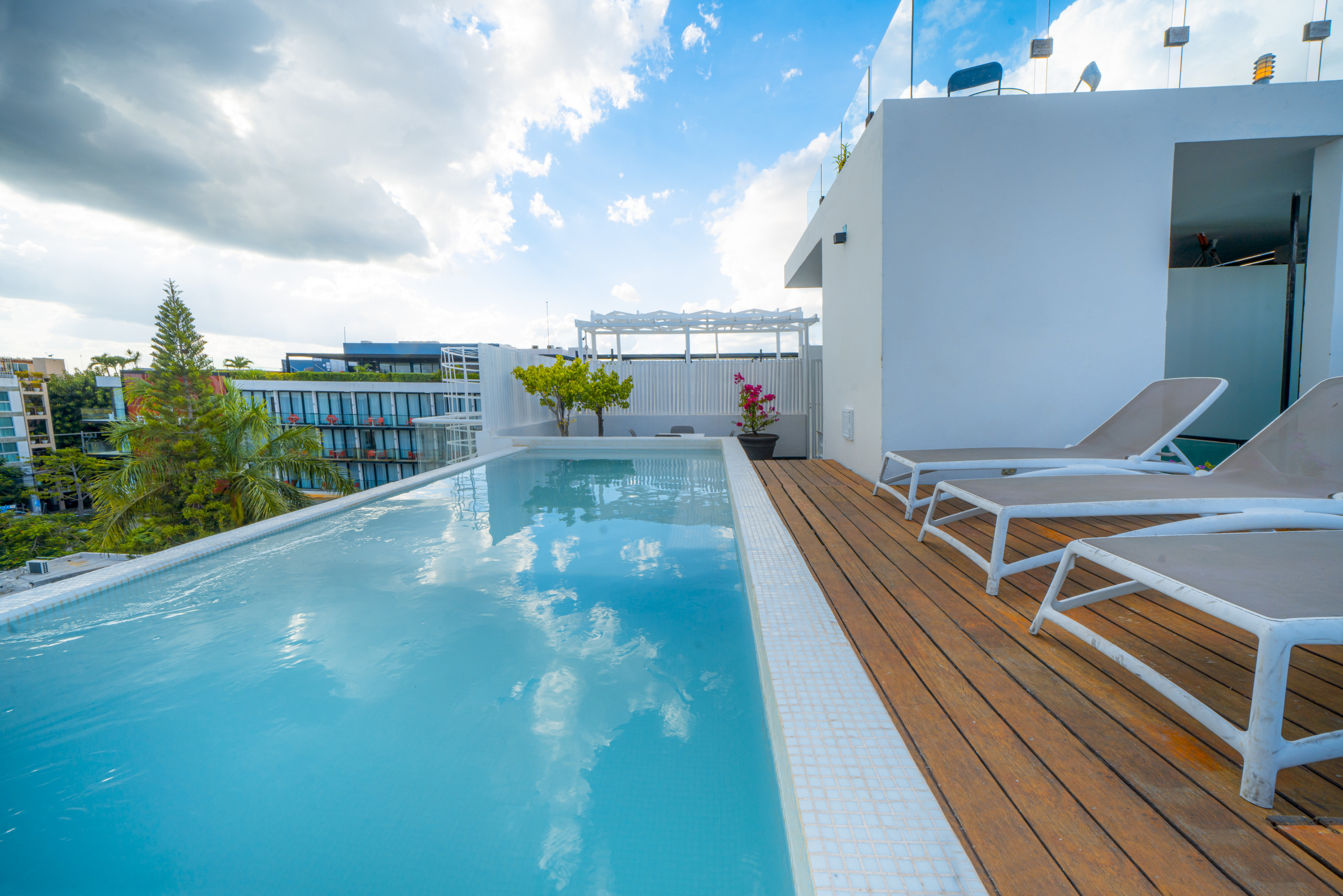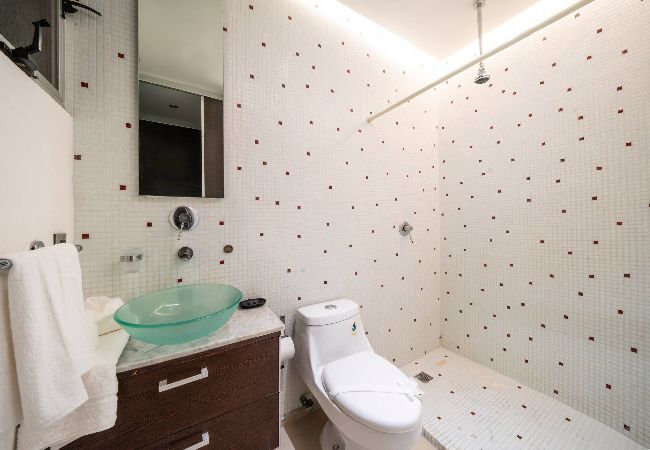El residencial en Playa del Carmen posee 2 habitaciones y capacidad para 4 personas. Alojamiento de 98 m². Dispone de elevador, plancha, caja fuerte, acceso internet (wifi), secadora, balcón, aire acondicionado, alberca comunitaria, 1 Televisión. La cocina americana, de inducción, está equipada con refrigerador, microondas, lavavajillas, utensilios/cocina, cafetera, tostador y fogones.