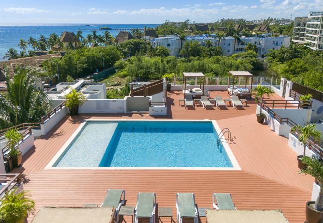 It is a sophisticated condominium with a pool view and located on the first floor, being one of the most popular condominiums among the Playa del Carmen communities. It is located next to the white sands of Coco Beach. Eat outdoors on your private terrace, while using your grill, rest all day on your water loungers.